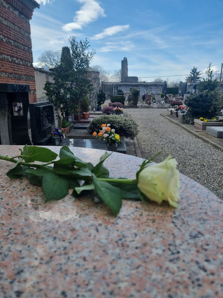 La seconda, iconica immagine a cui vorrei affidare queste poche righe di oggi è ancora varesina e ci riporta ad un secondo camposanto, non quello di Flora: si tratta del cimitero di Velate, ove riposano anche i miei nonni, e proprio di fronte ad una scrittrice a me particolarmente cara perché è stata colei che ha rivoluzionato – e proprio da Varese – la letteratura italiana popolare, nella declinazione del romanzo sentimentale: Liala. Di lei mi sono variamente occupata e a vario titolo; mi preme ricordarla oggi, affettuosamente, nel giorno della sua scomparsa – 15 aprile 1995 – perché nel giorno dei 125 dalla nascita (31 marzo) non è stato allestito nulla per ricordarla. Io vado spesso a trovare la nonna e anche lei: mi siedo sui gradini del suo bel monumento con un libro in mano e quietamente leggo e le parlo, e di tanto in tanto qualcuno mi vede, si ferma e mi chiede, e io rispondo suggerendo un libro. Anche Liala era molto pia e nel suo ultimo riposo – mi raccontava un’amica infermiera che l’aveva accudita alla Quiete sino all’ultimo respiro, Mariuccia di Belforte – si fece seppellire con un magnifico crocefisso avito fra le mani (la sua famiglia aveva un papa nei geni), rivolta verso la memoria della Torre da un lato e quella del Sacro Monte dall’altro, con l’immagine della Via Crucis. E per quel raro gioco di segni che pochi sappiamo cogliere, era legata ai medesimi luoghi cari che furono tali a Flora, di cui peraltro era pressoché coetanea.