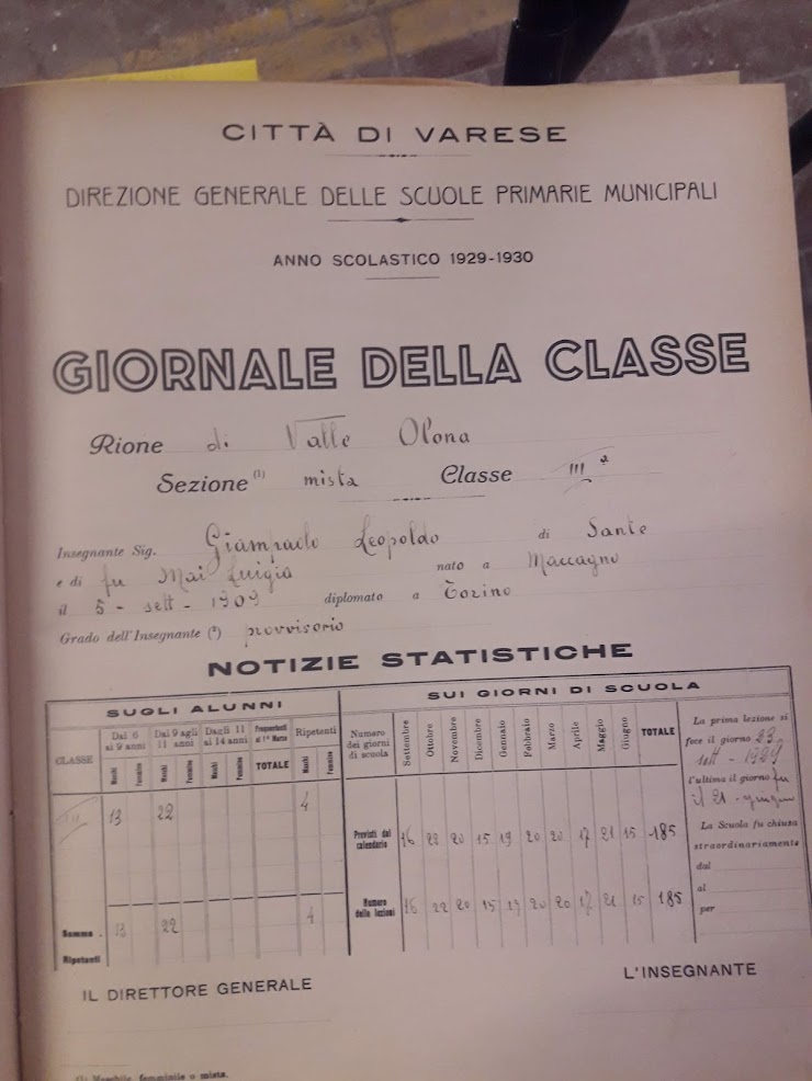 Ci vorrà un breve riassunto per ritrovare il filo del discorso, e anche qualche aggiustatina rispetto alla puntata precedente. Una mattina di inizio dicembre del lontano 1929 una giovane maestra trentenne di Milano, Flora V., approda a Varese dopo un viaggio in treno che le sarà sicuramente rimasto impresso nella memoria per sempre: tant’è vero che sul registro – e perdonatemi, ci ho riflettuto solamente dopo! – anziché lunedì 2 dicembre – data dell’effettiva presa di possesso della cattedra – annota la data del 1 dicembre, che in realtà quell’anno cade di domenica.