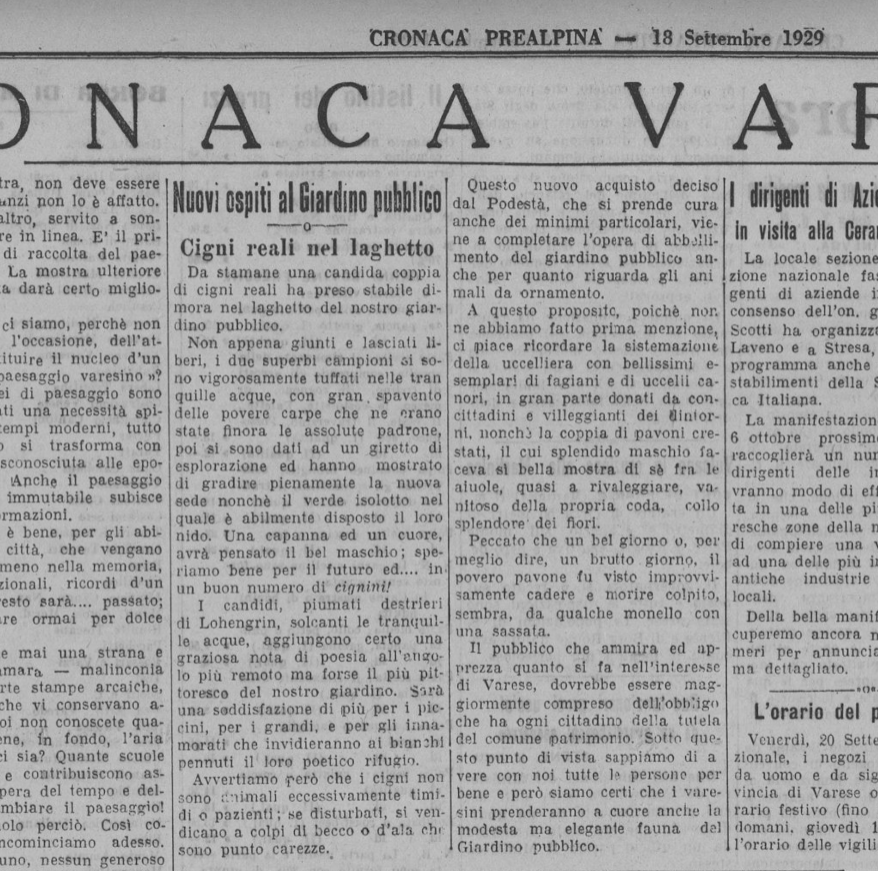 Peccato che la politica cittadina sia, da decenni, avvezza più a pensare Varese come un’azienda da amministrare, che come una civitas dove al centro ci sono i cives, appunto, i cittadini, e non il conticino da far quadrare a tutti i costi. Peccato, anche, che gli umanisti, in questa politica, latitino sempre più, dato che in quel cigno morente nessuno ha ravvisato alcun canto soffocato, alcuna voce messa a tacere. (Ed io, che banalmente avevo letto del loro arrivo nel settembre del 1929, proprio nei giorni in cui il mio personaggio più bello, Flora, vinceva il concorso magistrale che l’avrebbe portata ad insegnare a Varese – avevo appena fatto la scoperta in archivio – ho collegato immediatamente, e non son più riuscita a scrivere nulla da allora).