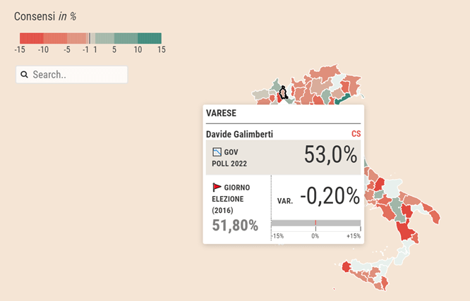 Secondo il report, Davide Galimberti, sindaco di Varese al suo secondo mandato, sarebbe risalito dalla centesima posizione del 2021 alla quarantatreesima a parimerito con Gianni Nuti sindaco di Aosta e Francesco Rucco di Vicenza, entrambi esponenti del centrodestra.