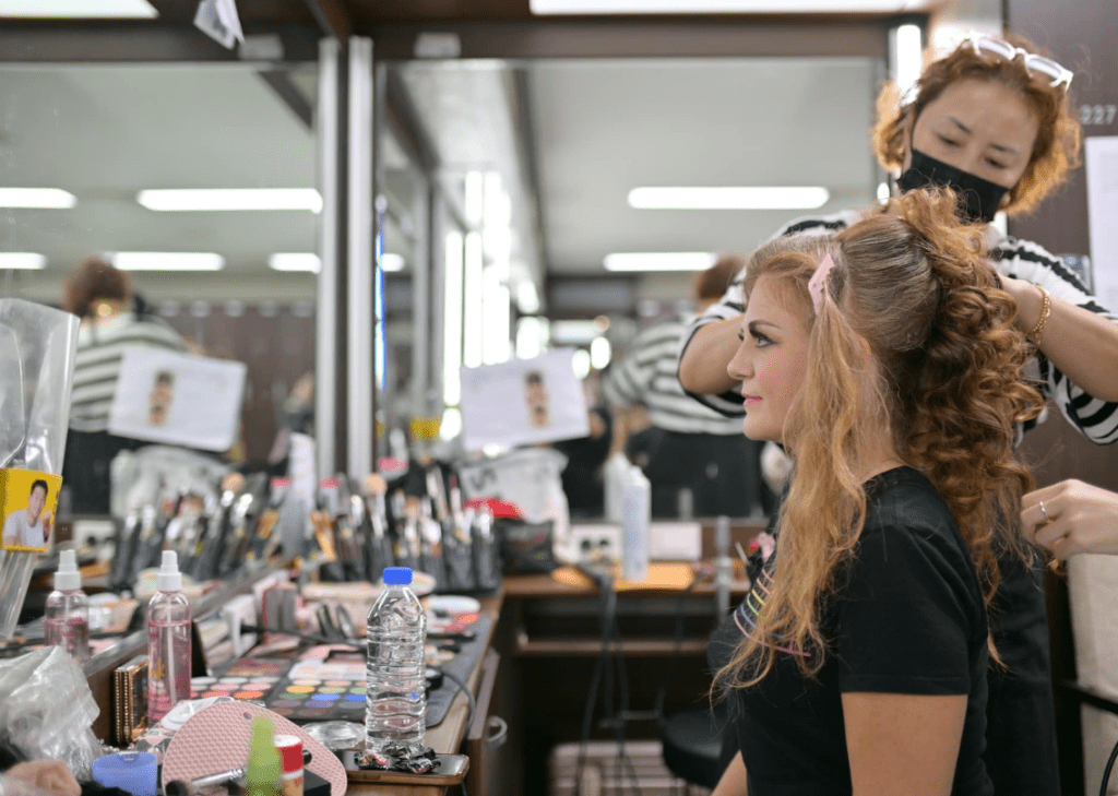 In foto: Francesca Lombardi Mazzulli ai preparativi di scena (credits: sito Facebook del Teatro Comunale di Ferrara)