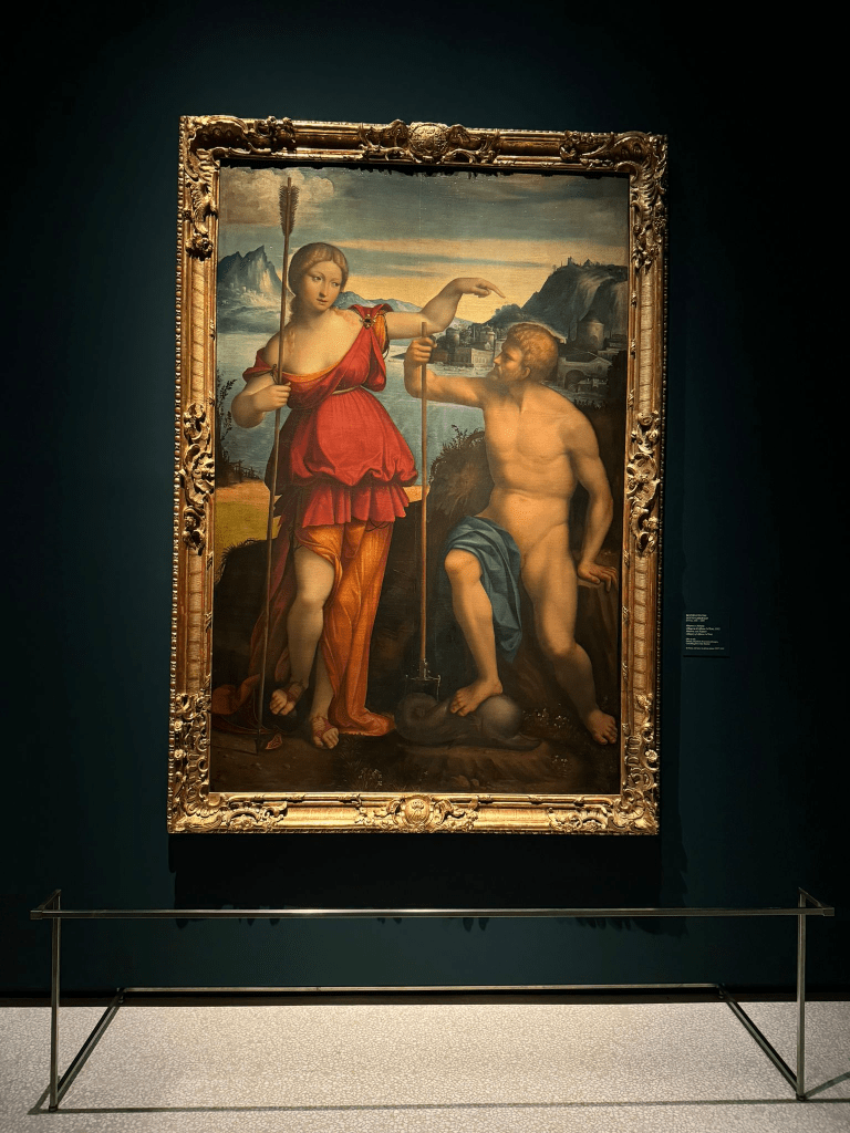 Benvenuto Tisi detto il Garofalo, Atene e Poseidone, circa 1515, ispirato alle Metamorfosi di Ovidio. Olio su tela, Dresda, Gemadegalerie Alte Meister