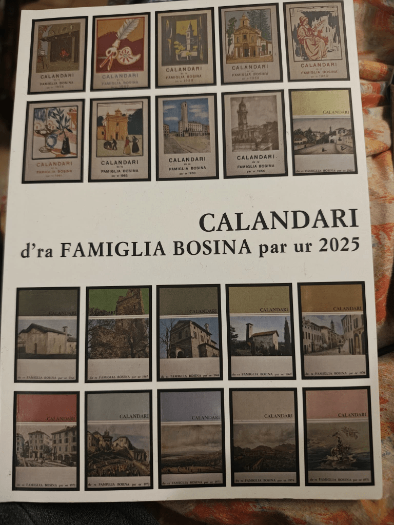 - Il Calandari do Ra Famiglia Bosina par or 2025, che ringrazio di cuore per aver accolto come da diversi anni a questa parte una mia storia, è stato ufficialmente presentato a dicembre in due occasioni: la cena sociale del 6 dicembre della Famiglia Bosina e il 15 dicembre, giorno di luna piena, incredibilmente proprio il giorno di Maria, all’ANCE di via Cavour. Diretto dal mio carissimo Carlo Zanzi, giornalista e romanziere, è disponibile alla libreria antiquaria Canesi di via Walder e alla Ubik della centralissima Piazza del Podestà, uno dei luoghi principali dove si snoda la storia di Maria. ↩︎
