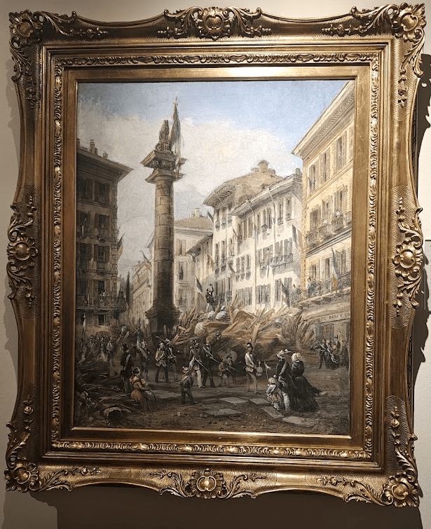 E’ qui, dunque, che prende avvio il viaggio ideale nei luoghi rappresentati da un pittore di notevole caratura e produttività, acuto osservatore delle città e delle loro genti d’Europa e del mondo del secolo XIX nonché testimone oculare e reporter iconografico degli avvenimenti salienti della storia di quel tempo.