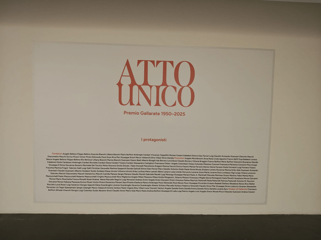 Si rimane letteralmente incantati dal contesto: l’ubicazione e la denominazione odierne risalgono al 2010, ma la vicenda del Ma*Ga ha origini ben più remote, dal momento che si collegano a quella del Premio di Pittura Città di Gallarate, nato nel 1950, e alla fondazione del primo nucleo della Galleria d’Arte cittadina nell’anno 1966, costituito intorno alle opere premiate ed acquistate dal Premio stesso in tutte le sue edizioni svoltesi. Ed è proprio la storia di questo premio che compie nel 2025 il suo settantacinquesimo anno di vita ad essere in questi mesi, dal 13 aprile sino al 5 ottobre prossimo, protagonista degli spazi espositivi del Ma*Ga, accanto all’esposizione permanente della Sala degli Arazzi donazione Missoni.