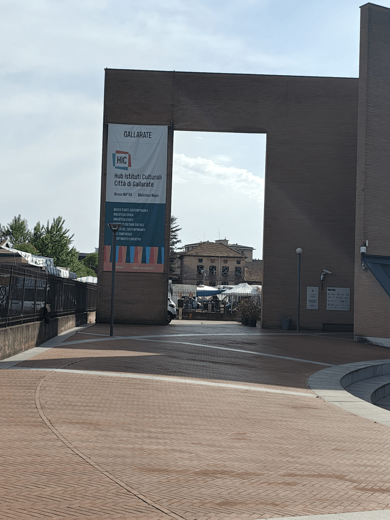 Uscivo da una settimana un poco pesante, di disorientamento intellettuale, nella consapevolezza che più dai, meno ti viene riconosciuto: ma non voglio angosciare il lettore, anzi, vorrei fargli capire proprio il contrario, e cioè che l’arte è come un balsamo che cura: e già il solo arrivare davanti al maestoso edificio che ospita il museo gallaratese è un sollievo dell’anima. Immaginate di trovarvi di fronte alla piazza in cui va conducendosi il mercato cittadino del sabato, fra odori, voci, colori locali; accanto, svetta il padiglione dove si celebra la cultura della medesima città; di fianco, dall’altra parte della strada, lo sguardo s’addentra nelle antiche lapidi nei grandiosi mausolei del camposanto cittadino. Ecco, questo è il contesto magnifico in cui sorge, in via Egidio De Magri, a Gallarate, nei pressi di un comodo e ampio parcheggio gratuito, in posizione comunque defilata e tranquilla rispetto al centro cittadino e al brulicar del traffico veicolare.