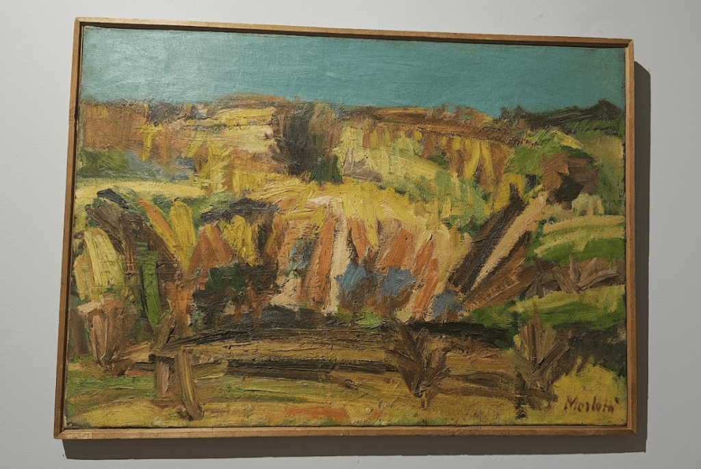 Altro capolavoro del maestro di Bagheria esposto è, infatti, il crepuscolare Peperoni, giornali e case di notte, del 1961, che ci restituisce frammenti d’estate in notturna attraverso una natura morta decisamente non convenzionale. Detto fra noi, per me giornalista d’estrazione cultural gastronomica e adorante la divinità duplice dei peperoni e della tavolozza di Guttuso, quest’opera rappresenta l’archetipo estetico, in specie dopo aver appreso dalla mia cara Serena Contini che diverse opere preparatorie alla Vucciria o il mercato di Palermo, notoriamente dipinta a Velate, rappresentavano proprio… dei peperoni.