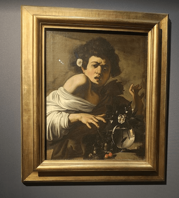 Un sodalizio che si apre nel tempo ad un colloquio fecondissimo con numerose voci del panorama letterario, critico, artistico italiano del Novecento, molte delle quali presenti nell’itinerario di visita, dal già citato Guttuso a Giorgio Morandi, De Pisis, Carrà, Adriana Pincherle e tanti altri, avviandosi però sotto l’egida del grande colpo di genio giovanile di Longhi: la riscoperta di Caravaggio, di cui in mostra è esposto il celeberrimo Ragazzo morso dal ramarro (1597 circa), eco capriccioso del Bacco degli Uffizi e della Medusa (vi assicuro che ammirarli tutti dal vero nel giro di poche ore è esperienza umanamente devastante: una tabula rasa, una renovatio animae da cui ci si riprende a fatica, né io sono ancora riuscita completamente a farlo).