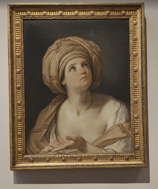 Prima di congedarmi invitandovi a visitare la Pinacoteca nazionale di Bologna, ormai divenuto uno dei miei luoghi del cuore, vi lascio con un’opera altrettanto celebre di Guido Reni, più o meno coeva dell’Arianna: la Sibilla, dipinta fra 1635 e 1636. In questa piccola tela esposta nel corridoio che io chiamo delle pittrici (Artemisia, Lavinia Fontana, Elisabetta Sirani) la Sibilla, il cui capo è protetto dal tipico turbante pagano attribuitole nell’iconorafia classica, volge gli occhi al cielo in attesa della profezia che preannuncia la venuta di Cristo: un tema molto caro alla committenza privata dell’epoca. Lo abbiamo ritrovato anche a Varese nella sala settecentesca delle Sibille o Sala Veratti, il refettorio del Convento di Sant’Antonino, e in un certo qual senso anche in Guttushttps://lavocedivarese.blog/2025/07/16/se-un-viaggio-a-firenze-restituisce-frammenti-di-varese-a-villa-bardini-un-guttuso-inaspettato-evoca-estati-velatesi/o. A questo proposito, in extremis, vi svelo un segreto personale: ho ricevuto i complimenti della Fondazione Longhi per aver intuito in maniera prioritaria il probabile soggetto della Sibilla esposta nella recente mostra Villa Bardini. Ci sto lavorando.