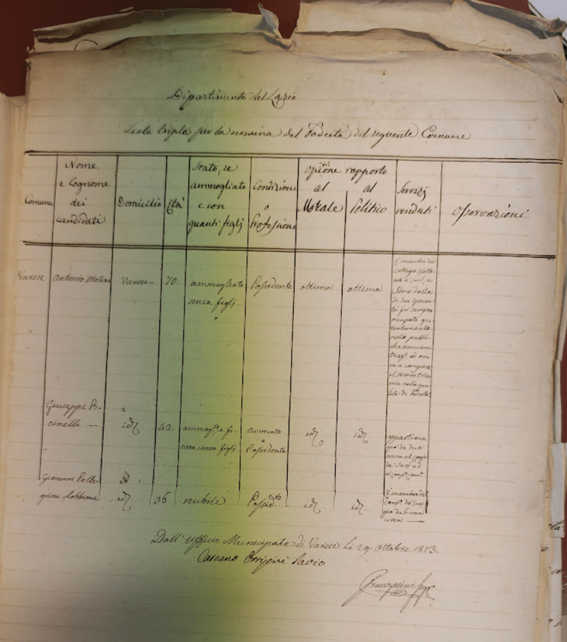 Dipartimento del Lario – Lista tripla per la nomina del Podestà di Varese. Siamo in piena epoca napoleonica, nel Regno d’Italia proclamato otto anni prima.